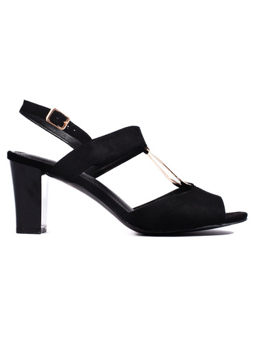 Dámske sandále na stĺpikovom podpätku čierno-zlaté