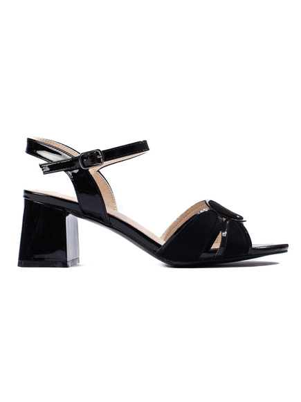 Čierno-strieborné sandále na podpätku s mašľou Potocki