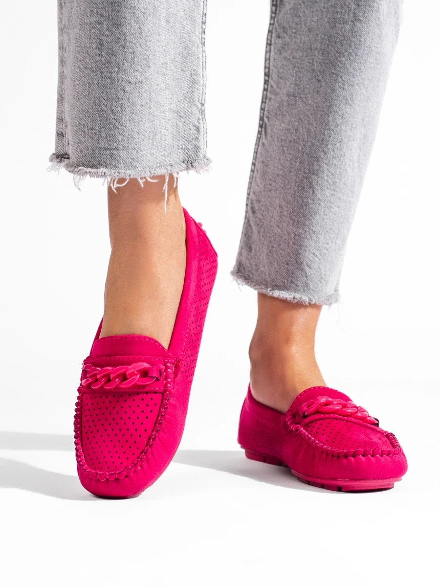 Ažúrové semišové dámske mokasíny v ružovej farbe – dotyk luxusu pre každý deň