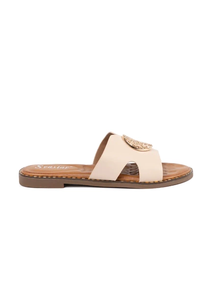 Šľapky svetlobéžové so zlatou ozdobou