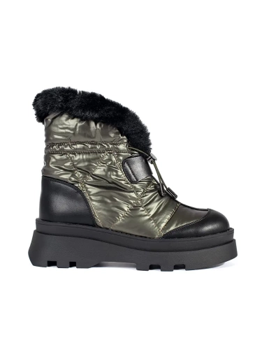 Zelené dámské snehule s čiernou kožušinou na platforme