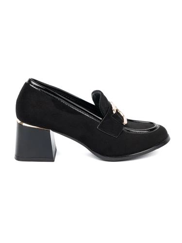 Čierne dámske mokasíny na kline so zlatou ozdobou