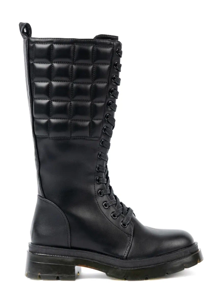 Čierne kožené dámske čižmy oficierky na platforme Sergio Leone