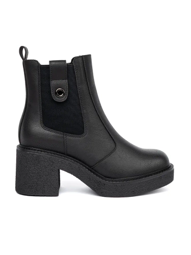 Čierne členkové čižmičky dámske na podpätku so sponou