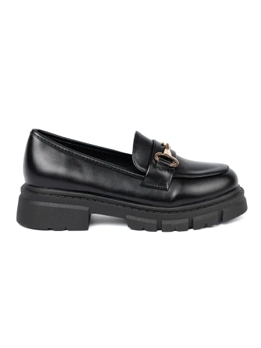 Čierne mokasíny na platforme so zlatou retiazkou