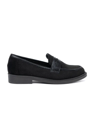 Čierne dámske mokasíny na platforme ozdobené prackou a kryštálikmi