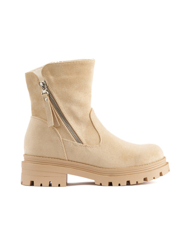 Béžové dámske členkové topánky s ozdobným zipsom