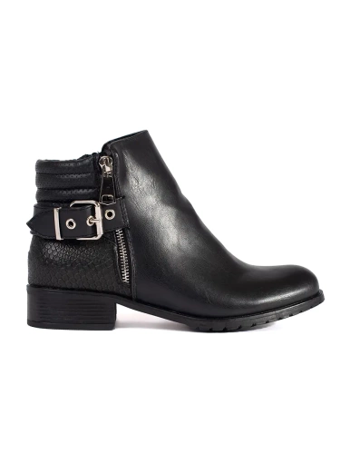 Čierne členkové čižmičky dámske na podpätku so sponou