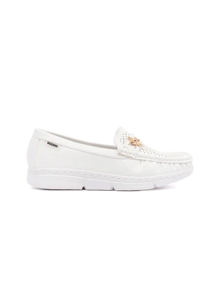 Svetlobéžové dierkované mokasíny so zlatými doplnkami
