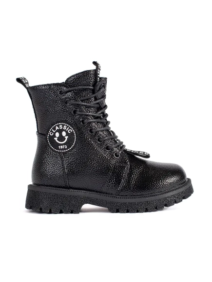 Čierne členkové topánky z prírodnej kože na hrubej vzorovanej podrážke