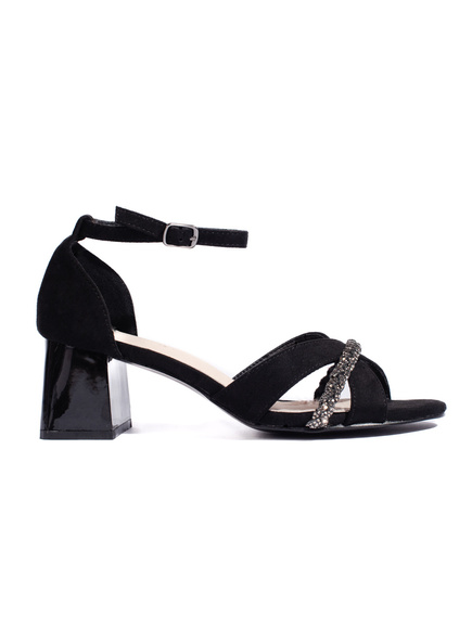 Dámske sandále na stĺpikovom podpätku čierno-zlaté