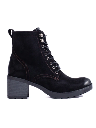 Šnurovacie dámske členkové topánky na podpätku Potocki z eko semišu