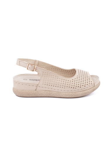 Svetlobéžové sandále na nízkom podpätku dierkované