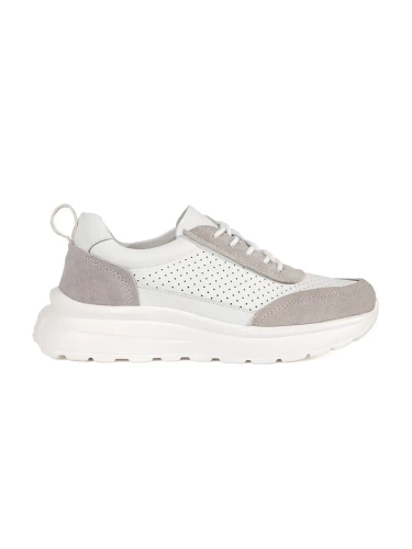 Kožené bielo-béžové dierkované športové topánky na hrubej podrážke