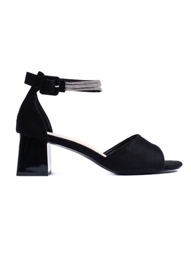 Dámske sandále na stĺpikovom podpätku čierno-zlaté