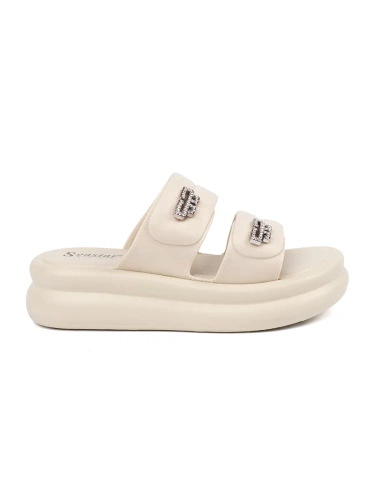 Čierno-biele dámske šľapky so zlatou retiazkou