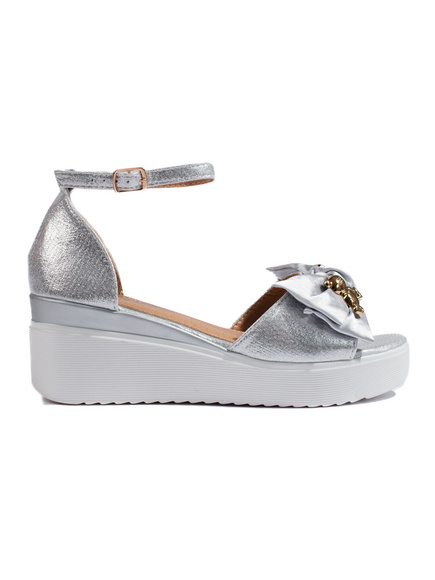 Strieborné dámske sandále na kline s mašličkou