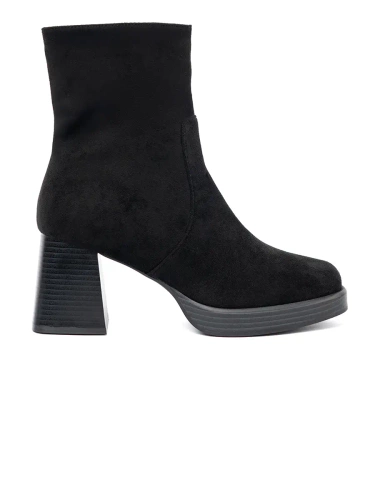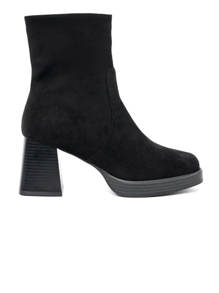 Čierne členkové čižmičky dámske na podpätku so sponou