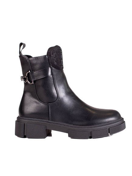 Čierne dámske čižmy s retiazkou z eko kože