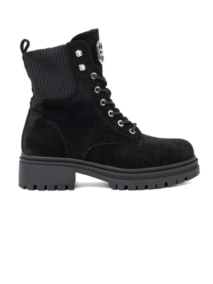 Čierne šnurovacie členkové dievčenské topánky zateplené kožušinkou