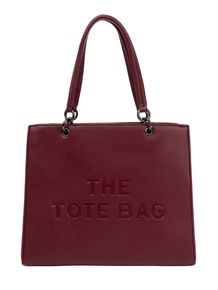 Bordová kabelka typu tote s reliéfnym nápisom
