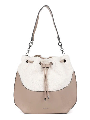 Béžová dámska kabelka s kožušinovou časťou barančekového typu