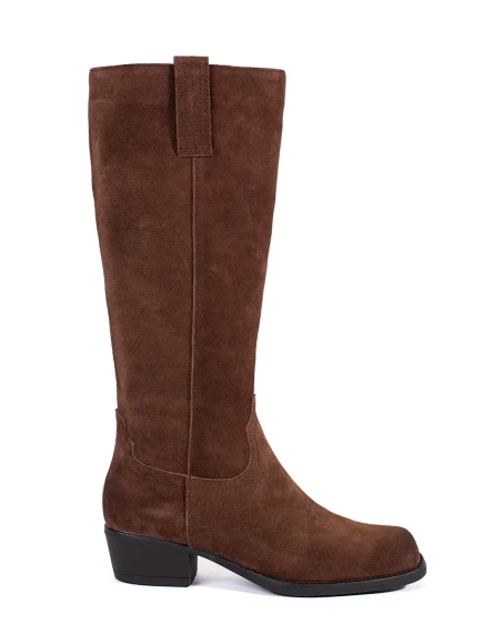 Hnedé dámske čižmičky na nízkom podpätku s ozdobným pásikom