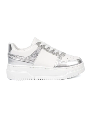 Bielo-strieborné sneakersy so sponou kožené Sergio Leone