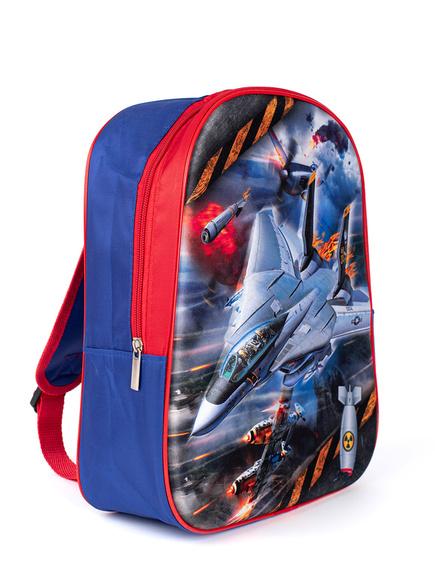 Modro-červený batoh pre chlapca s vesmírnou loďou