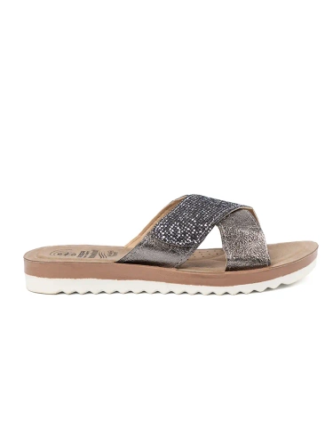 Metalické dámske šľapky s bielou podrážkou